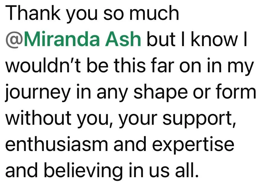 Unlimited support from Miranda via email for 12 weeks