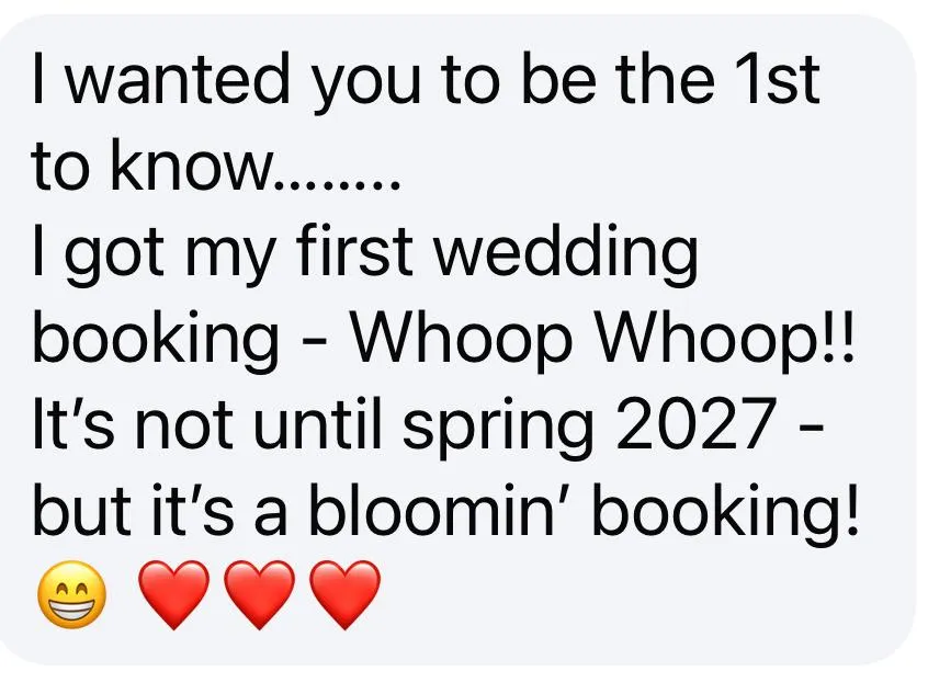 I tried a few things, but it wasn’t until I created a clear system, the same system I now teach in the Celebrant Success Accelerator, that my business began to grow. I went back to basics, took control, learned what actually works, and applied it consistently.