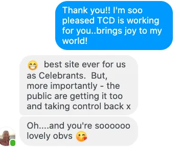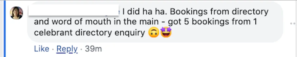 Oh my oh my oh my. Practically fully booked. 60% of my referrals are from The Celebrant Directory. #please and #thankyou. Worth every penny for the exposure. Happy girl