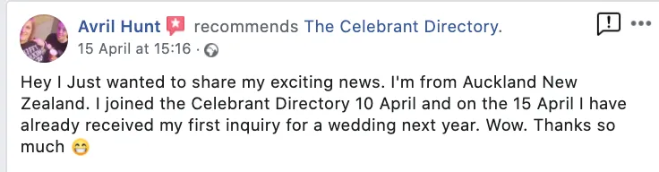 Your Celebrant Directory listing is included with Guild membership and ready to start generating enquiries today.