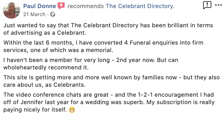 The Celebrant Directory is now an exclusive benefit of Guild membership, rather than a standalone service. All Guild members receive directory listings based on their membership tier, along with comprehensive professional support, community access, and ongoing development opportunities.